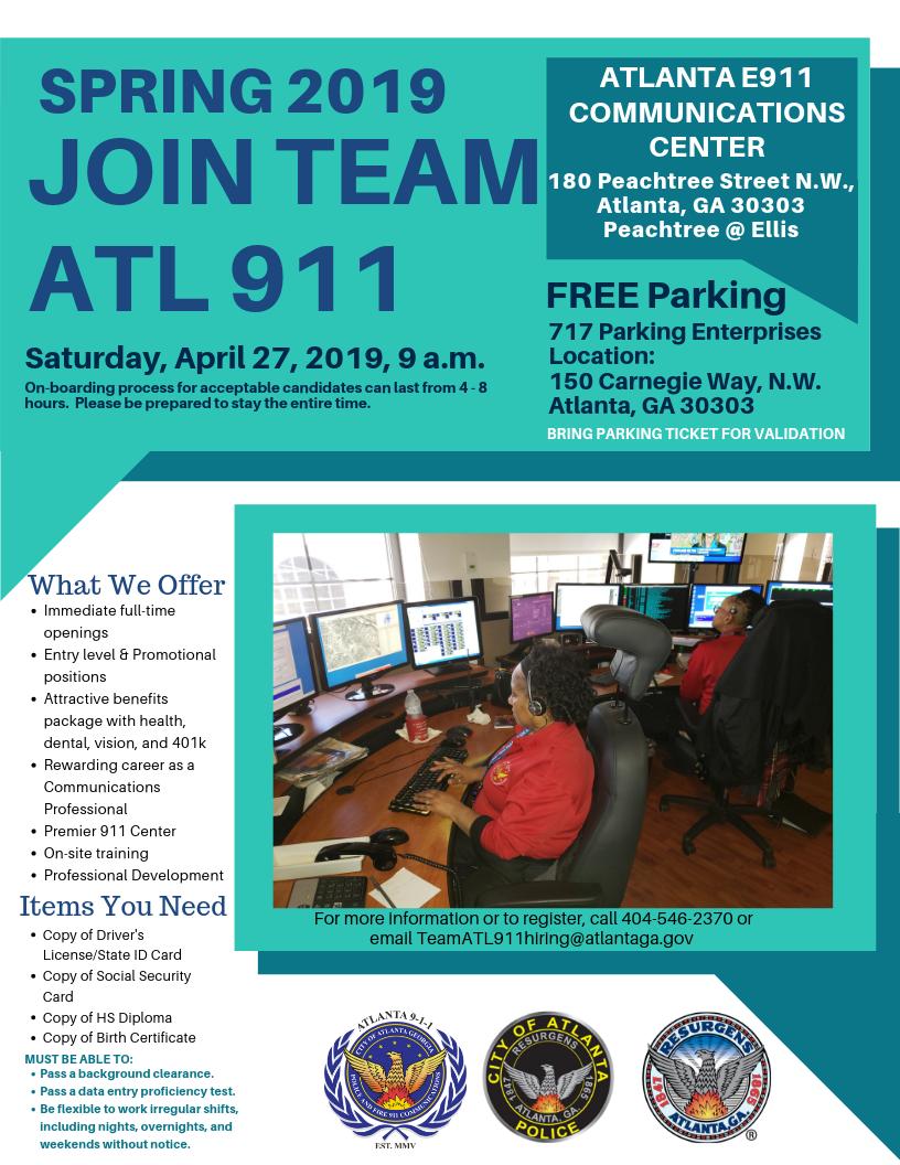 Atlanta Police Department Na Twitteru Join E911 Are You Readytoserve Come To Apd S Teamatl911 Communications Center S Job Fair On Saturday April 27 2019 At 9 A M To Learn How To Become A